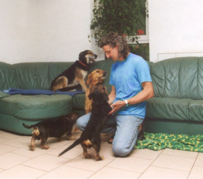 Unsere Gäste akzeptieren unsere Spielregeln gern, denn es befreit sie von der Übernahme strapaziöser Aufgaben wie z.B. Sichern der eigenen Stellung, Abbau von Spannungen in der Gruppe, Bewachen von Haus und Gelände..., zumal unser Verwöhnprogramm alle Bedürfnisse der Tiere deckt ( z.B.: Sozialkontakt, maßvolle menschliche Aufmerksamkeit und Zuwendung, adäquate Liegeplätze für jeden, Regelmäßigkeit von Ruhe- und Aktivitätsphasen, ausreichend Futter, Befriedigung von Bewegungsbedürfnis, Anregung der Sinnesorgane durch olfaktorische, optische, akustische und taktile Reize ). | |||||||||||||||||||||||||||||||||||||||||||||||||||||||||||||||||||||||